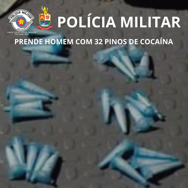 JAHU: POLÍCIA MILITAR PRENDE HOMEM COM 32 PINOS DE COCAÍNA